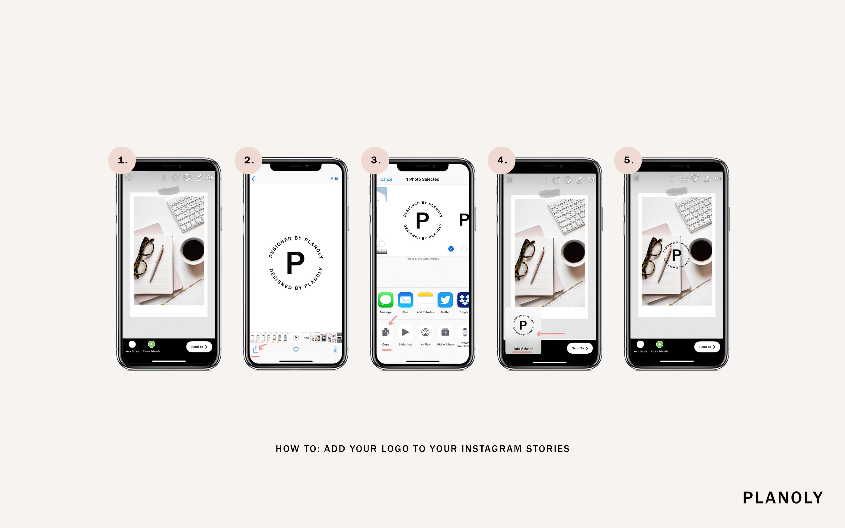 To get started, save your logo as a .PNG file and send it to your phone via email, Dropbox, AirDrop, etc. We recommend utilizing a high-res image that is at least 600x600 pixels at 300 dpi. It's also a great idea to create a new album in your camera roll labeled "logos" to easily access your designs. Keep in mind these instructions are for iOS only! Once you've got your logo saved and ready to go on your phone, there are two ways you can add it to your Instagram Stories.