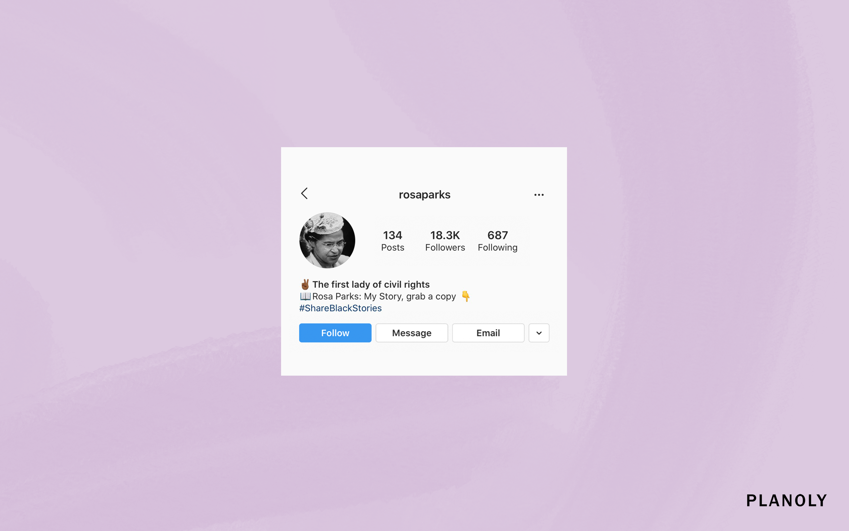 Sharing your location is another way to draw interest to your bio. If you have a restaurant, art studio, fashion showroom, or you simply want viewers to know your place of origin for potential connections, use this feature to direct everyone to your location. You'll need an Instagram Business Account for this feature, which also allows you to have the shop icon in your bio as well! Novelist Maya Angelou is perfect for this. As a writer/poet, her location may frequently shift. Sure, Angelou was famously stationed in either St. Louis or Winston-Salem, but she could be traveling for a book signing in New York City or for a lecture at a university overseas. Changing your location could alert your global community to your activations in other regions. Moreover, when Angelou promotes a new book or a re-issue of an elder classic, she could call out to them in her bio or use the shoppable link to direct users to her webpage. She can also link products directly through her Instagram posts! Again, with an Instagram business account or PLANOLY sellit, each of these features are available, including advanced contact information.