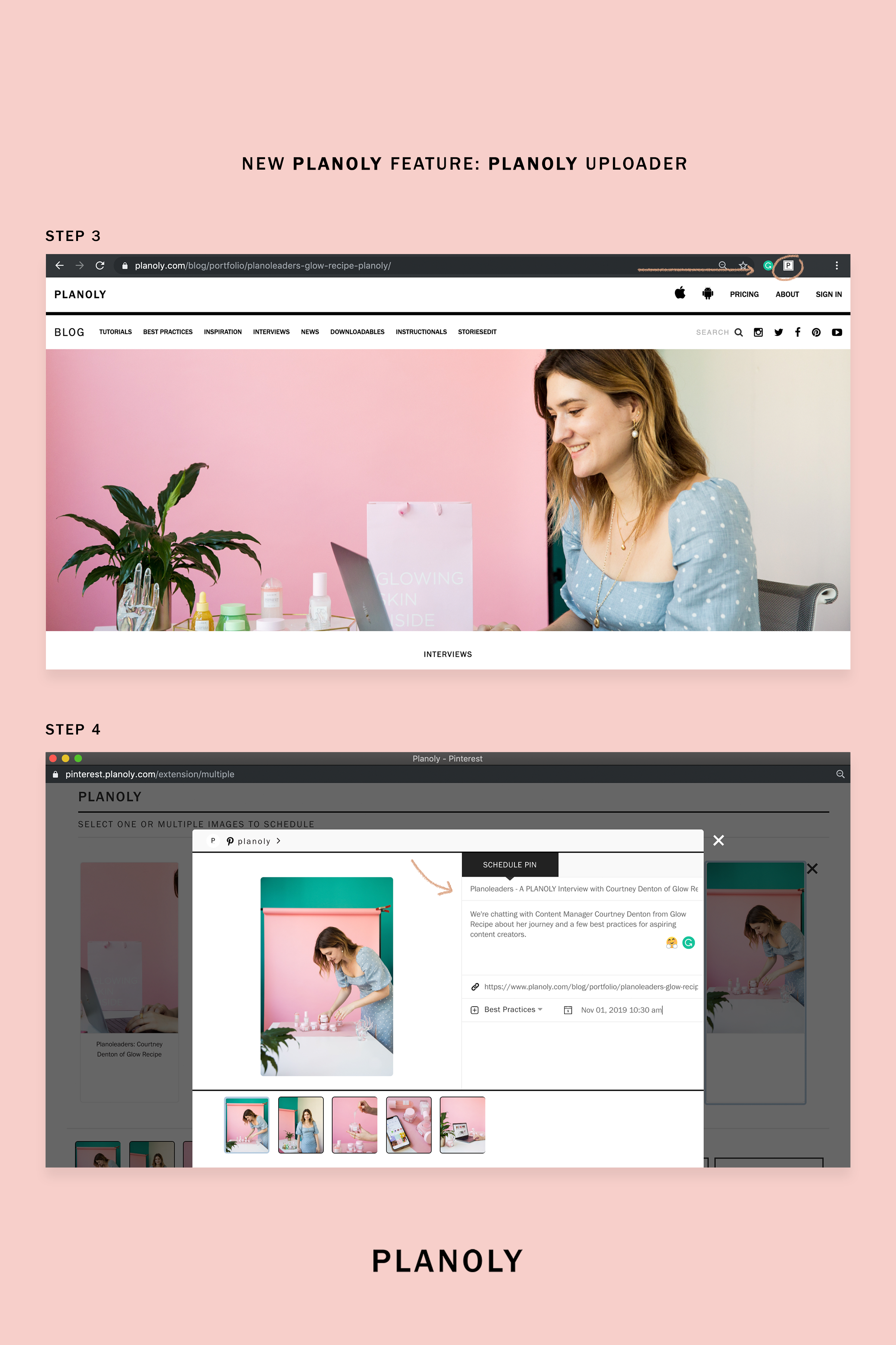We have one goal: simplify your social media marketing. Both the PLANOLY and StoriesEdit app exist to help you plan and spend less time creating and scheduling content. Our latest tool aims to ease the way you curate and save content. Today we're excited to announce PLANOLY Uploader, a web extension for Chrome or Safari web browsers to quickly upload and schedule multiple Pins at a time. The extension makes it easy to categorize and save your images to various Pinterest boards using our Pin Planner. And with more than 300 million monthly Pinterest users, streamlining the process to save one's Pins has become a priority for most of our users.