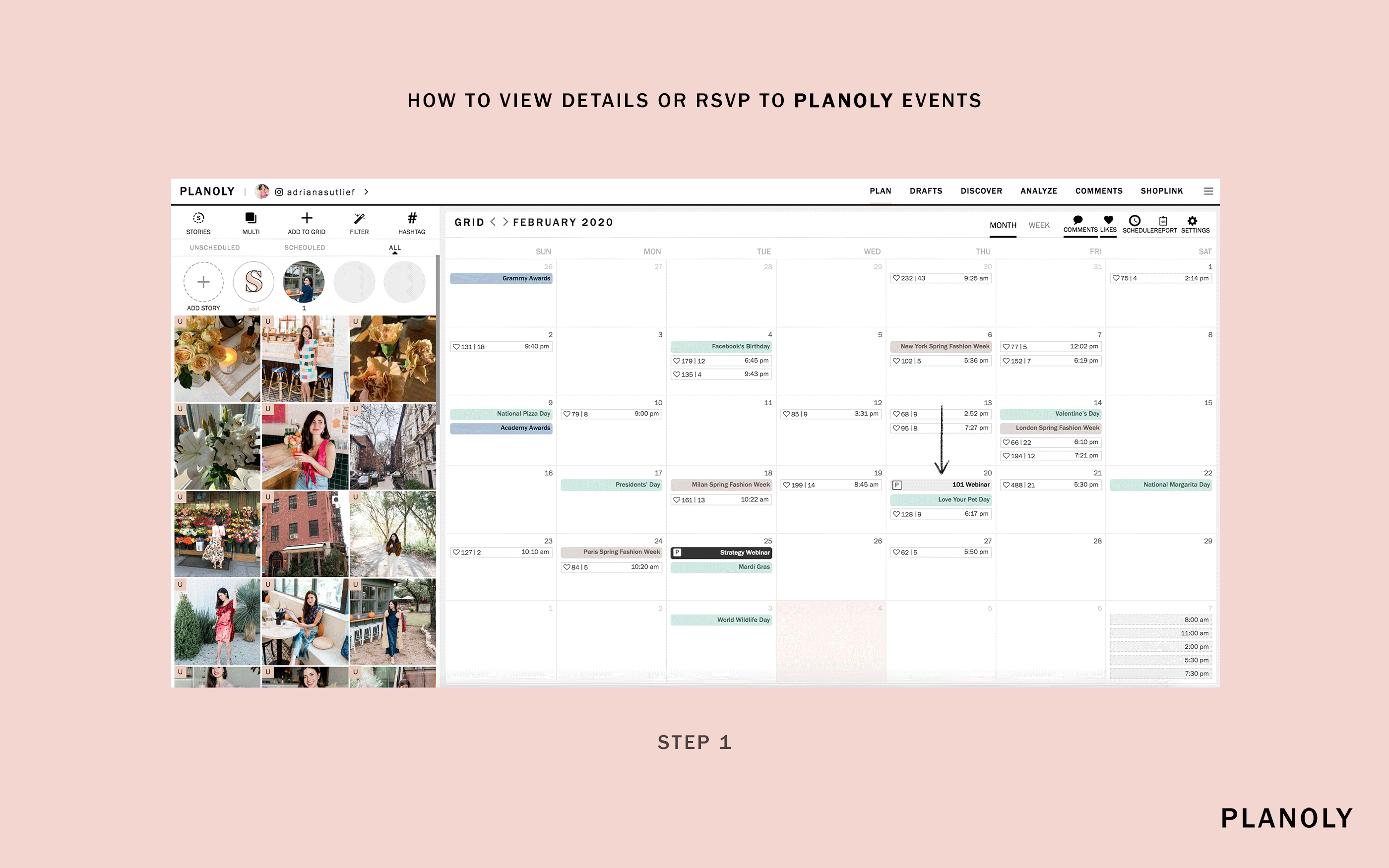 PLANOLY Event Details & RSVP: View upcoming workshops, webinars, conferences, etc. You can RSVP directly through the calendar now! Grab your spot for all upcoming PLANOLY events to ensure that you're on the list.